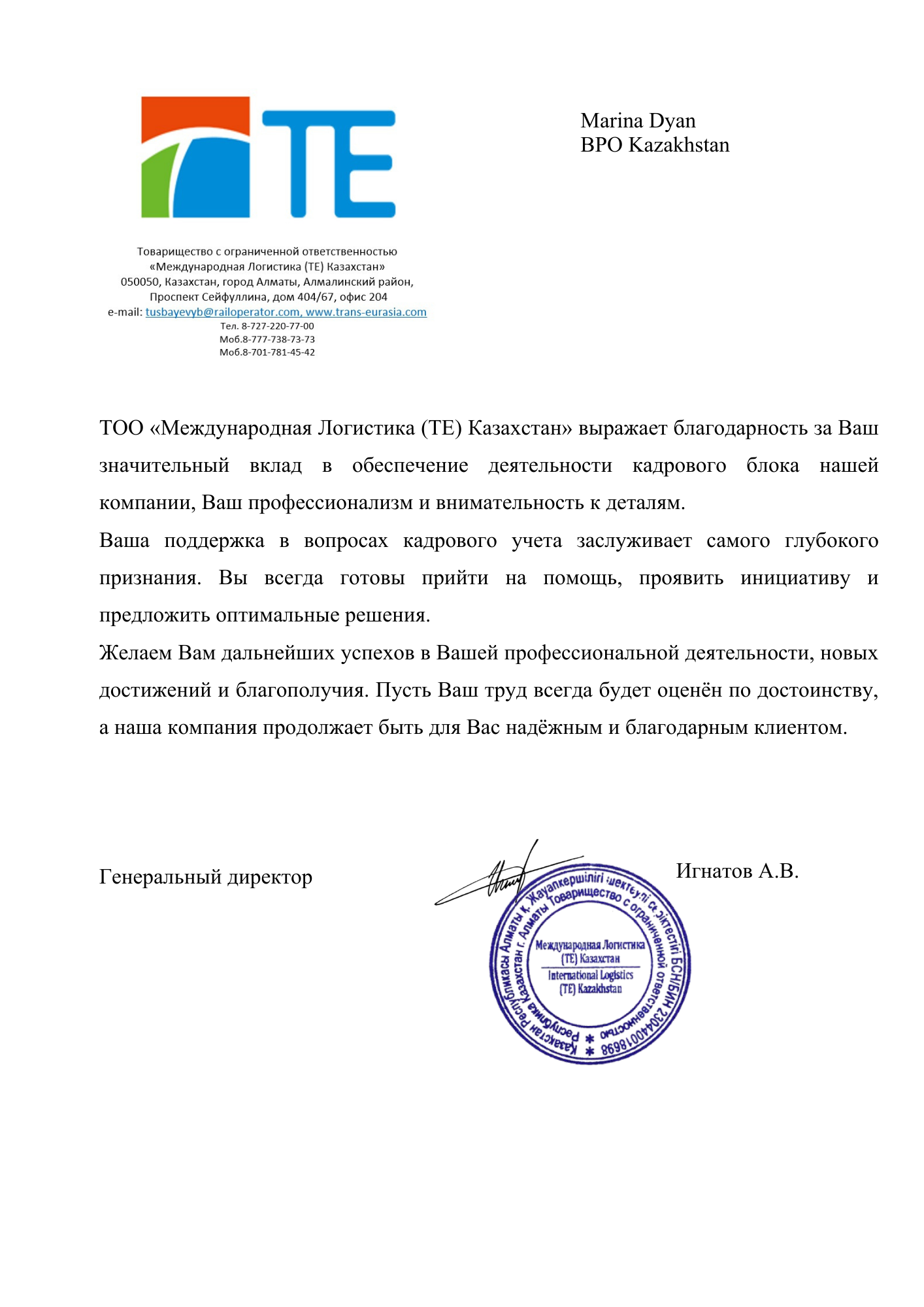 Head of HR Administration DepartmentZhanar Baibekova holds the position of Head of the HR Administration Department and has over 19 years of experience in the HR field, including 9 years in leading outsourcing companies. Her responsibilities include: Distributing tasks among department employees, taking into account the specifics o ...