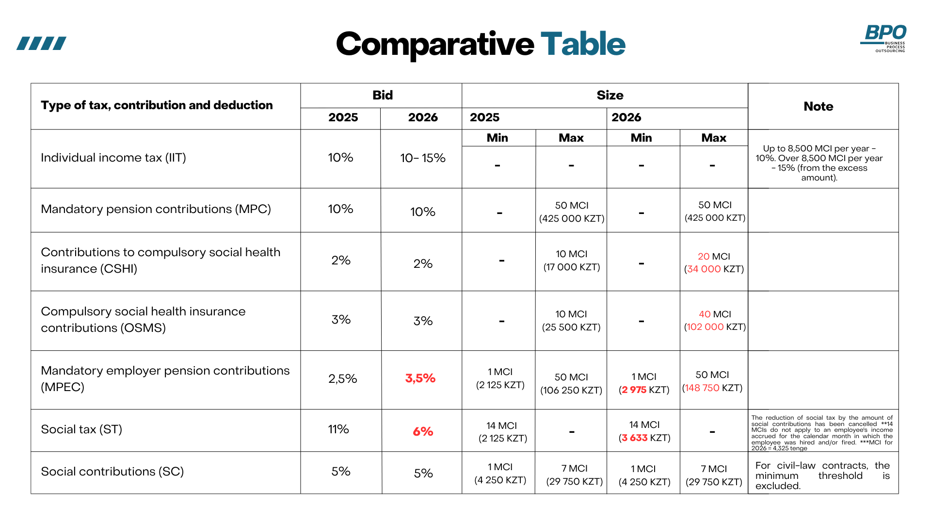 Overview of changes in the legislation of the Republic of Kazakhstan on the payroll for 2026